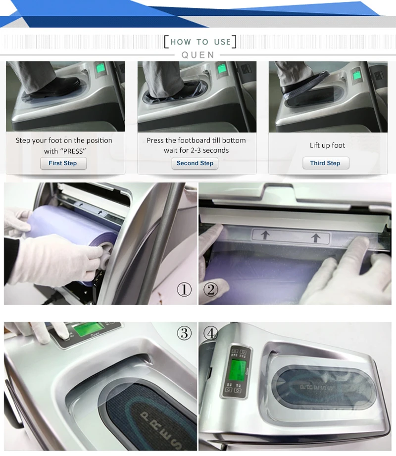 It only takes three seconds to make PVC film into shoe cover and wraps people's shoes.